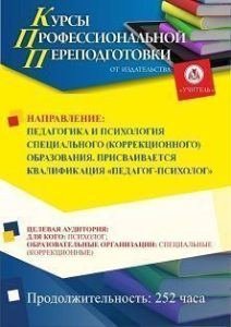 Педагогика и психология специального (коррекционного) образования. Присваивается квалификация «Педагог-психолог» (252 ч.)